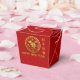 Goldener chinesischer Papierschnitt einer Ratte in einen Kreis mit schönen Wolken + Happy New Year in Chinesisch und Englisch, Jahr der Ratte und groß 2020. Design auf Take-out Gevor Box mit rotem Hintergrund. Sie können die Hintergrundfarbe und das Jahr (Schriftart, Farbe, Größe und Position) einfach ändern, indem Sie auf die Schaltfläche Anpassen klicken. Matching Grußkarte, Einladung und mehr... Ideal für ein modernes und zeitloses chinesisches Neujahr der Ratte 2020.
