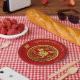 Goldener chinesischer Papierschnitt einer Ratte in einen Kreis mit schönen Wolken (gedrucktes Bild) + Glückliches neues Jahr in Chinesisch und Englisch, Jahr der Ratte und große rote 2020. Design auf Party Papierplatte mit rotem Hintergrund. Sie können die Hintergrundfarbe und das Jahr (Schriftart, Farbe, Größe und Position) einfach ändern, indem Sie auf die Schaltfläche Anpassen klicken. Passende Papierserviette, handwerkliche Produkte, Grußkarte, Einladung und mehr... Ideal für ein modernes und zeitloses chinesisches Neujahr der Ratte 2020.