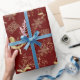 Gold Christmas Reindeer on Dark Red Geschenkpapier