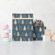 Gold Christmas Trees Midnight Blue Wrapping Paper Geschenkpapier