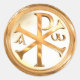 Der Chi Rho oder das Christogramm besteht aus den ersten beiden griechischen Buchstaben des Namens Christi: K & R. Konstantin der Große sah es in einer Vision vor der Schlacht um die Mailänder Brücke, und auch die lateinischen Wörter "In Hoc signo vinces" (in diesem Zeichen, gewinnen). Er benutzte es als sein Wappen und gewann. Nach seinem großen Sieg legalisierte er das Christentum im gesamten Römischen Reich und beendete alle Christlichen Verfolgungen.