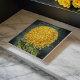 Die Vintage Collage auf dieser dekorativen Keramik Kachel weist ein wunderschönes goldgelbes Spinnenchrysanthemum auf, das einem aquamarinen Damast-Hintergrund ähnelt, ähnlich dem Retro-Wallpaper. Die goldene Handschrift verleiht dem blau-grün strukturierten Hintergrund ein besonderes Interesse. Die Blume, die auf dieser Kachel vorgestellt wird, stammt aus einer alten botanischen Illustration des öffentlichen Bereichs.
