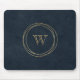 Dieses elegante Design zeichnet sich durch ein Monogramm aus Gold aus, das in einem offenen Serif-Schriftart mit drei unregelmäßigen goldenen Drahtkreisen auf einem dunkelblauen, fast schwarzen Hintergrund gerahmt ist.