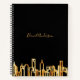Schwarzer Hintergrund mit vergoldeten Imitaten in der Silhouette der Stadt. Vorlage für Ihren Namen, goldene Buchstaben. Der Name ist mit einem modernen und trendigen handgeschriebenen Skript geschrieben. Ideal für echte Anwesen-Agent! Dieses Notebook ist auch in unserem Geschäft mit Ihrem eigenen Firmenlogo erhältlich.