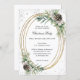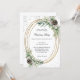 Ein weißer Hintergrund. Ein ovaler goldfarbener Rahmen aus Imitaten, verziert mit Kegeln, weißen Beeren und Kiefernwäldern. Imitate silberner Glitzer, Glitzern. Personalisieren und fügen Sie die Details hinzu. Schwarzer Text. QR-Code auf Ihrer Website für UAWG- und Party-Details.