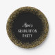 Diese goldene Confetti auf der schwarzen Graduation Party-Papiertafel ist perfekt für eine elegante Abschlussfeier von der Highschool, Uni, Krankenpflege oder Graduiertenschule. Das Design ist mit Imitaten aus Gold und klassisch weißer Kalligraphie auf schwarzem Hintergrund gestaltet. Personalisieren Sie die Teller mit dem Namen des Absolventen.
