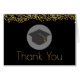 Ein Abschluss Dankeschön Karte mit Fake Gold Konfetti Glitzer. Set auf schwarzem Hintergrund. Illustriert mit einer schwarzen Graduationskappe. Elegant und elegant.