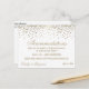Mit dieser hübschen, gläsernen Postkarte können Sie Ihren außerhalb der Stadt gelegenen Gästen bei der Suche nach den gewünschten Informationen behilflich sein. Ihre Informationen werden sowohl in traditionellen als auch in Kunst Deko-Schriftart mit Imitaten Goldfolie Akzente erscheinen. Bitte verwenden Sie die vorgegebenen Vorlagenfelder, um Ihre eigenen Daten hinzuzufügen. Klicken Sie für weitere Anpassungen, wenn Sie irgendeinen Aspekt des Designs ändern möchten. Bitte beachten Sie, dass ich hinter dem Text einige durchsichtige weiße Schichten über der Konfetti-Grafik auf der Vorderseite der Karte eingefügt habe, um die Ablenkung zu verbergen. Sie können diese Ebenen behalten oder nach Bedarf neu positionieren. Schriftart und ihre Farben sowie die weiße Hintergrundfarbe können nach Belieben geändert werden. Dieses Design ist auch als Gehäusekarte in einem kleineren Format erhältlich.