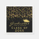 Gold Confetti Black Class von 2022 Abschluss Napkins. Trendy goldenes Drehbuch mit goldenem Konfetti und goldener Graduierungskappe auf schwarzen Hintergrund. Fügen Sie den Namen Ihres Abschlusses hinzu. Sie können die Jahreszahl ändern.