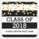 Individuelle Name-Klasse von 2018 Abschluss Aufkleber mit goldenen Konfetti und schwarz-weiß Streifen Muster. Bitte beachten Sie, dass Gold nur fotografischer Effekt ist.