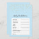 Dieses Gold Confetti Blue Baby Shower Baby Vorhersagespiel ist perfekt für eine klassische, einfache Babydusche oder Sprinkle. Das Design ist mit Imitaten goldener Konfetti auf blauem Hintergrund und eleganter dunkler Kalligraphie gestaltet.