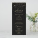 Das extravagante Drehbuch-Hochzeitsprogramm für Konfetti ist perfekt für eine rustikale Hochzeit. Das schlichte und elegante Design besticht durch glänzende Goldkonfetti in Verbindung mit einer stilvollen Schrift-Typografie.