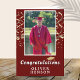 Gold Confetti Congratulations Graduation Photo Card. Trendy script with golden confetti on a dark red background. Add your favorite photo and personalize it with your grad’s name. Personalize the special message inside or erase it.