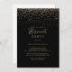 Diese extravagante, goldene Konfetti-Script-Pensionierung Party Einladung ist perfekt für ein rustikales Ereignis. Das schlichte und elegante Design besticht durch glänzende Goldkonfetti in Verbindung mit einer stilvollen Schrift-Typografie.