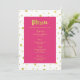 Hochzeitsmenü in fuchsienfarbenem Rosa und Weiß mit goldenem Konfetti-Muster und handgeschriebenem Text, anpassbar mit Ihren Details und erhältlich in passenden Hochzeitsprodukten.
