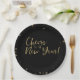 stilvoll und unterhaltsam, sind diese Teller perfekt für Ihre Silvesterfeier zum Party geeignet. Das Design umfasst goldene Konfetti auf schwarzem Hintergrund und den Text "Das neue Jahr ankurbeln!"