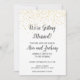 Diese goldene Confetti-Kalligrafie Wir werden heiraten Hochzeit Einladung ist perfekt für eine einfache, elegante Hochzeit. Das Design ist mit Imitaten goldfarbenen Glitzer Konfetti auf weißem Hintergrund mit schick dunkelgrauer Kalligraphie.