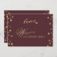 Nur königliche Eleganz: "Liebe" Imitat Goldfolienskript, mit zwei Herzen, Imitate Goldfolie Konfetti auf Bordeaux/Champagner Hintergrund. Verwenden Sie das Tool Anpassen, um alle benötigten Informationen hinzuzufügen. Sie können Größe, Schriftart, Farbe und Wortlaut ändern. Für mehr, sehen Sie meine Gold Confetti Burgundy/Champagne Wedding Collection.