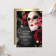 Gold Confetti Masque Rote Rosen Quinceañera Einladung