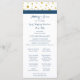 Maßgeschneidertes Hochzeitsprogramm in dunkelblau und weiß mit goldenen Konfetti und handgeschriebenem Stil. Passen Sie diese Reihenfolge der Zeremonie-Karten mit Ihrem eigenen Text an.