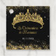 Ein reichhaltiger schwarzer Hintergrund zeigt eine glitzernde goldene Tiara mit Imitaten goldenen Konfetti, die von der Spitze des Gunst-Tags abregnen, um sich am Boden zu sammeln. Perfekt für die glänzendste Quinceanera aller Zeiten! Dies kann auch für jedes funkelnde Mädchen zum Geburtstag oder anderen Feiern angepasst werden. Nutzen Sie als einfache Dankeschön an Favoriten oder an Geschenke anhängen. Verfügbar mit passenden Produkten.