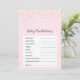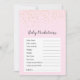 Dieses Spiel mit dem Gold Confetti Pink Baby Shower ist perfekt für eine klassische, moderne Babydusche oder Sprinkle. Das Design ist mit Imitaten goldener Konfetti auf einem rosa Hintergrund und eleganter dunkler Kalligraphie gestaltet.