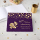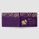 Goldene Konfetti und englische Rose auf dunklem lila Hintergrund 50. Hochzeitstag Gästebuch