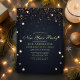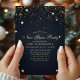 Diese elegante Silvesternacht-Party Einladung besticht durch goldene Konfetti-Sterne vor marinebaublauem Hintergrund. Personalisieren Sie dieses individuelle Design mit Ihren eigenen Party-Details.