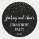 Gold Confetti über Black Engagement Party Envelope Runder Aufkleber