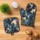 Gold Cream Blue Cowhide Ofenhandschuh & Topflappen-Set