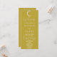 Die Präsentation unseres eleganten Gold Wedding Programms mit einem fesselnden, dezenten himmlischen Thema mit einem strahlenden goldenen Halbmond im Mittelpunkt. Ideal für himmlische, moonthematische, mystische oder nächtliche Hochzeiten. Auf der Vorderseite dieses exquisiten Programms werden stolz die Namen der Paare, das bedeutsame Hochzeitstermin, die Einzelheiten zum Ort und die umfassenden Zeremonie-Informationen aufgeführt. Vor dem Hintergrund schimmernder Goldfarben präsentieren sich diese Details elegant in einem übersichtlichen und leicht lesbaren Schriftart, der für Klarheit und Eleganz sorgt. Hinzu kommt noch eine zusätzliche Touch von Finesse, die Schlüsselbegriffe wie "Welcome", "Ceremony" und "Wedding Party" werden in einem faszinierenden und charmanten Script-Schriftart delikat präsentiert, was den ästhetischen Reiz des Programms erhöht. Auf der anderen Seite drehe man auf eine sorgfältig organisierte Liste, auf der die angesehenen Mitglieder der Hochzeitsfeier aufgeführt sind. Die prächtige goldene Farbe in Verbindung mit dem faszinierenden, goldenen Halbmond erweckt eine himmlische Essenz und schafft eine kosmische Eleganz für Paare, die himmlische oder mystische Themen für ihre Hochzeit suchen. Dieses Gold Wedding Program, das mit einem faszinierenden, goldhalbmondfarbenen Mond geschmückt ist, ist speziell für Menschen zugeschnitten, die himmlische, moonthematische oder mystische Hochzeitsfeiern suchen. Das anmutige Design und der himmlische Charme verleihen dem Hotel eine verzauberte Aura und sind somit die perfekte Ergänzung für Paare, die ihren besonderen Tag mit himmlischen und mystischen Elementen verbinden möchten.