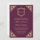 Gold Crest Monogram QR Code Plum Purple Wedding Einladung