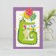 Ein fröhliches, niedliches Krokodil, das ein Geburtstagsgeschenk mit bunten Ballons macht. Es ist eine lustige und herzzerwärmende Geburtstagskarte.