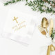 Diese religiöse Taufe feiert Serviette Design ist ein Kreuz mit der Gottes-Segen-Formulierung, die mit dem Vornamen des Babys personalisiert werden kann. In goldfarbener Digitalfarbe gedruckt.