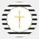 Gold Cross Schwarz und Weiß Streifen Runder Aufkleber