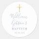 Gold Cross Taufe Christening Dusty Blue Runder Aufkleber