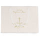 Gold Cross und LaurelsDiese schöne und delikate Einladung ist perfekt für die Taufe Ihres Kindes oder die Erste Heilige Kommunion. Die Akzente dieses Designs bestehen aus handgezeichneten Lorbeeren. Karo die passenden Accessoires, Geschenke, Gastgeschenken und Schreibwaren.