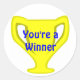 Der Belohnungsaufkleber des Lehrers in runder Form, mit weißem Hintergrund und gelbem Goldbecher. Der blaue Text über die Tasse sagt, du bist ein Gewinner. Passen Sie den Text an, um alles zu lesen, was Sie gewollt haben. Ideal für jedes Kind in der Schule.