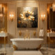 Das Werk mit einem goldenen und cremefarbenen Dekor auf einem schwarzen goldenen Hintergrund wäre ideal in einem großen Wohnzimmer oder einem formellen Speisesaal aufgehängt, wo die opulente Schönheit das luxuriöse Ambiente ergänzen kann. Es würde als auffälliger Brennpunkt über einem Kamin oder an einer prominenten Wand dienen, was dem Raum, der mit gepflegten Möbeln und elegantem Dekor geschmückt ist, eine Touch Eleganz verleiht. Alternativ könnte es das Ambiente einer gehobenen Suite oder eines exklusiven Büros oder Studios verbessern und so eine Atmosphäre der Raffinesse und Kreativität schaffen. Ob in einer privaten Residenz oder in einer Kunstgalerie, dieses Kunstwerk strahlt Luxus und zeitlosen Charme aus und begeistert die Zuschauer mit seinen eleganten ästhetischen und faszinierenden Details.