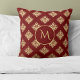 Gold Damask Muster Monogram auf Red Kissen