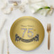 75. Geburtstagsparty Papier Teller mit hübschen Golddiamanten-Zahlen und Schwarz-Gold-Banner auf einem reichen goldenen Hintergrund. Sie können mit einem Namen oder einem anderen Text Ihrer Wahl personalisieren.