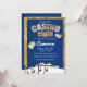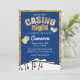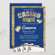 Diese Einladung enthält ein glänzendes und glamouröses Casino Night Gambling Party Thema. Karten mit vier ähnlichen Asse werden unten auf der Karte gedruckt. Münzen werden auf beiden Seiten des Textbereichs abgebildet. Das Casino ist in einem Goldfoliendesign gedruckt, wobei die nachts in einem goldenen Diamantenmuster bedruckt wird. Der Rahmen weist ein passendes Diamantenmuster auf einem blauen Hintergrund auf.