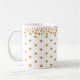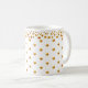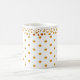 Elegante und wunderschöne Tasse mit goldfarbenem Dot Konfetti-Dekoration auf weißem Hintergrund. Das goldene Design ist nur ein Bild. Genießen Sie diese luxuriöse Tasse.