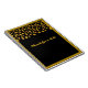 Notebook with elegant gold dot confetti on black background. Text "Knowledge is Gold" can be personalized.