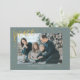 Weihnachtskarte mit dem Wort "Friede in Gold", umgeben von festlichen Goldpunkten, vor einem schlauen grünen Hintergrund. Einfache Anpassung mit Namen, Nachrichten und beliebtem Foto. Perfekte Art, Ihnen warme Wünsche für die Feriensaison zu senden.