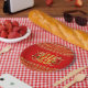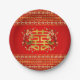 Gold Double Happy Symbol mit Blume und Vogel Pappteller