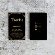 Fügen Sie Ihren Kundenbestellungen eine Touch Eleganz hinzu, mit dieser stilvollen Schwarz-Gold-Dankeschön-Einsteckkarte. Mit einem kühnen "Dank" im Goldfolieneffekt mit Platz für Ihre Geschäftsdetails, Social Media Handles oder eine persönliche Nachricht. Ideal für Etsy-Geschäfte, kleine Unternehmen oder Online-Shops. Der schwarze Hintergrund mit goldenen Akzenten schafft einen beruflichen und dennoch einladenden Look. Bitte beachten Sie: Der Goldeffekt wird gedruckt und es wird keine eigentliche Folie verwendet.