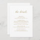 Gold einfache romantische Skripte Hochzeitsdetails Begleitkarte