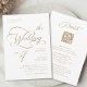 Elegante Hochzeitseinladung in Gold und Weiß mit romantischer Wirbler Kalligraphie-Schrift mit Details auf der Rückseite. Ideal für jede Jahreszeit. Für eine weiter gehende Anpassung dieses Designs klicken Sie bitte auf den BUTTON BLAU DESIGN TOOL oben!