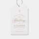 Gold Elegant Calligraphy Christening Fvor Gift Tags verfügt über ein zartes, modernes Kreuz, gepaart mit modernem Typ und schönen Kalligraphie-Skripten.